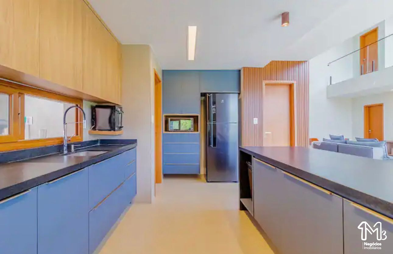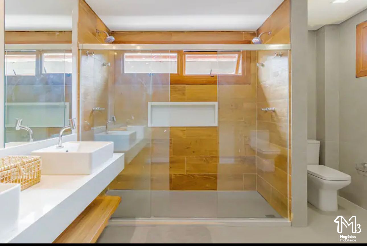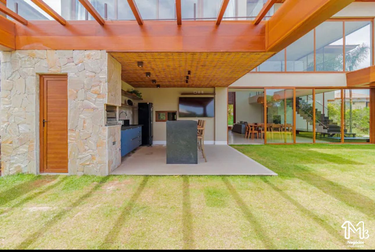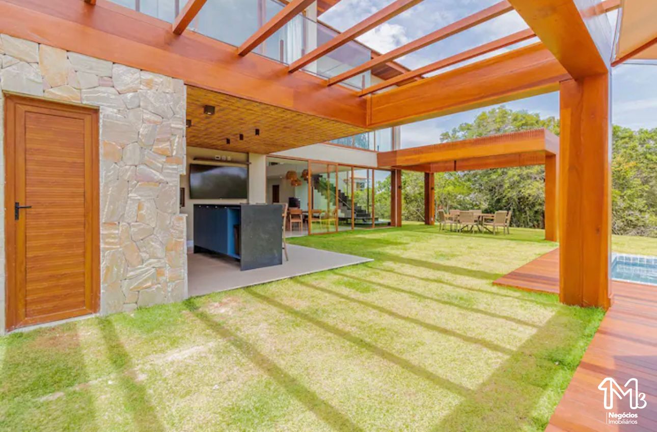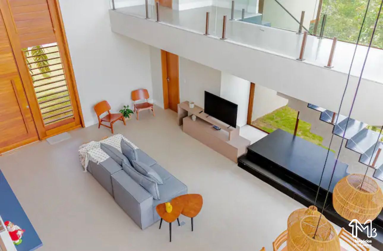Acomoda até 14 pessoas e conta com 5 suítes (2 no andar térreo), cozinha completa integrada com a sala de estar aconchegante e com o exterior da casa, que inclusive é a melhor parte da casa, com piscina, jardim e área gourmet com churrasqueira.