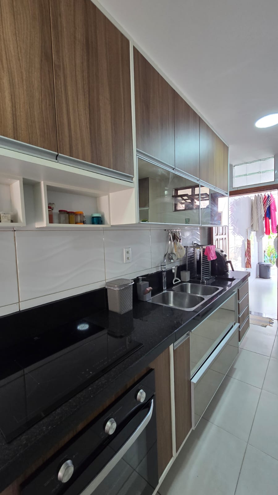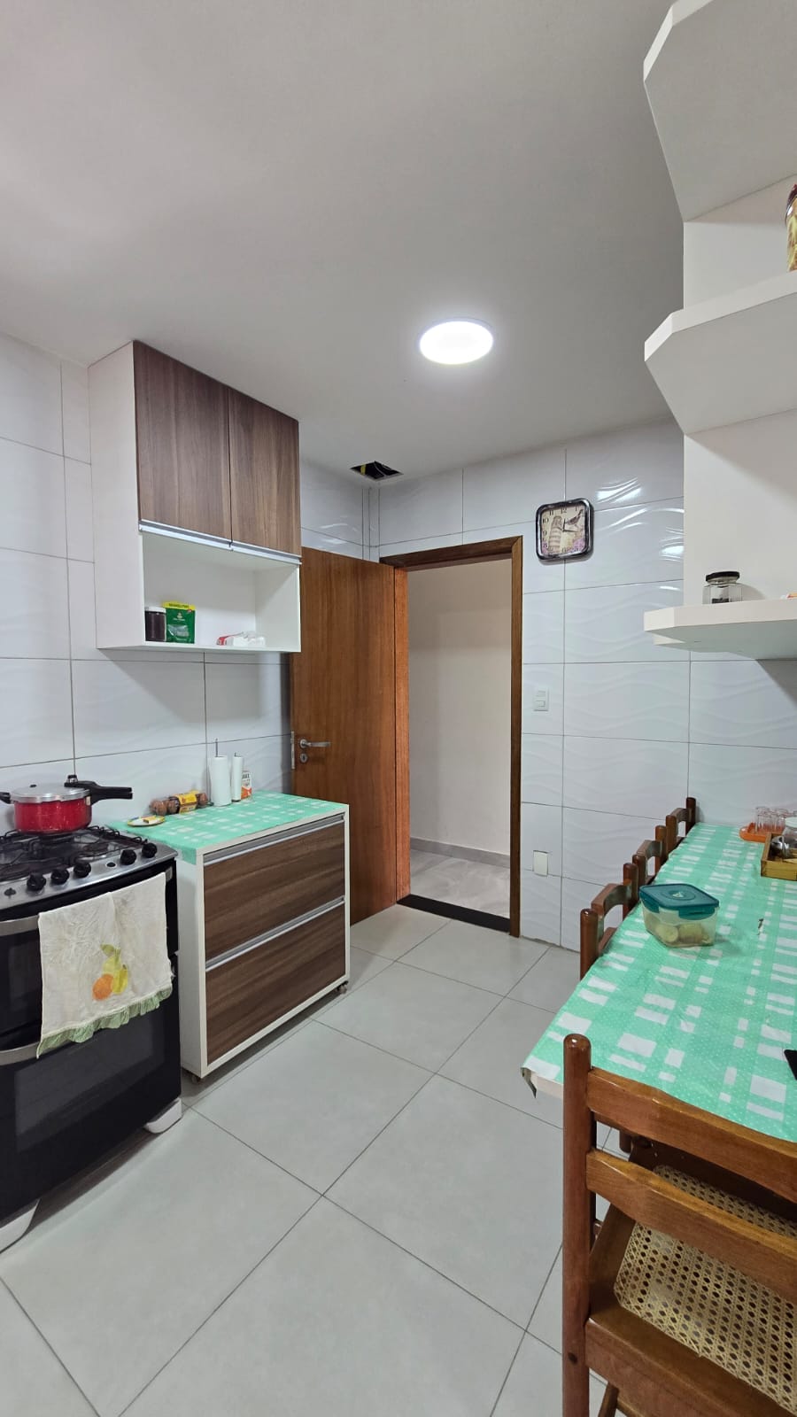 Cozinha funcional com acesso à despensa