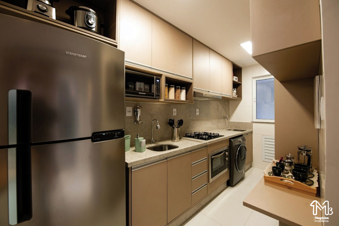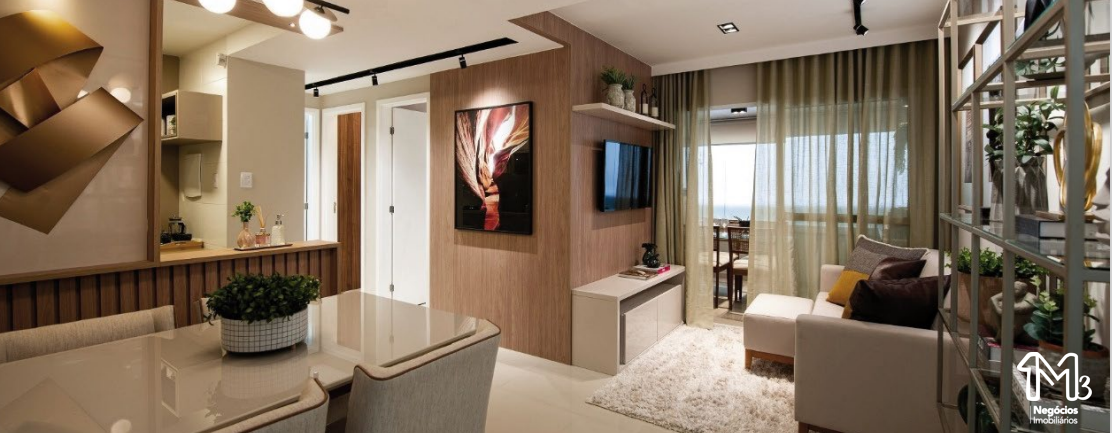 •Planta Tipo 2: 2/4 com suíte, varanda e cozinha americana – 57m²