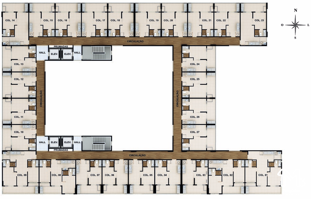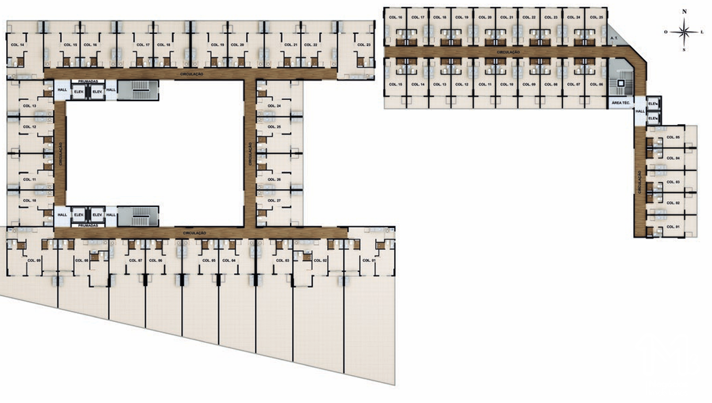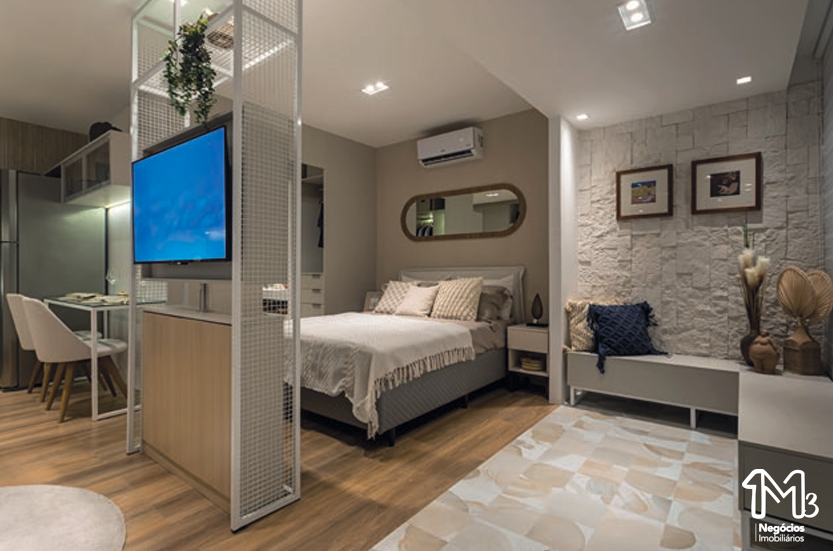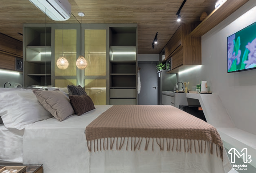 – Quarto e sala com varanda 30,80m²;