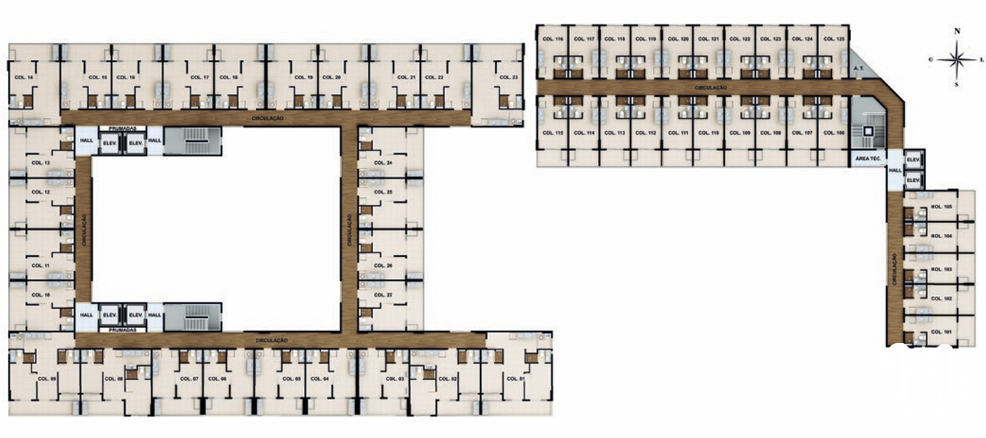 Plantas de apartamentos studios, quarto e sala e duas suítes: