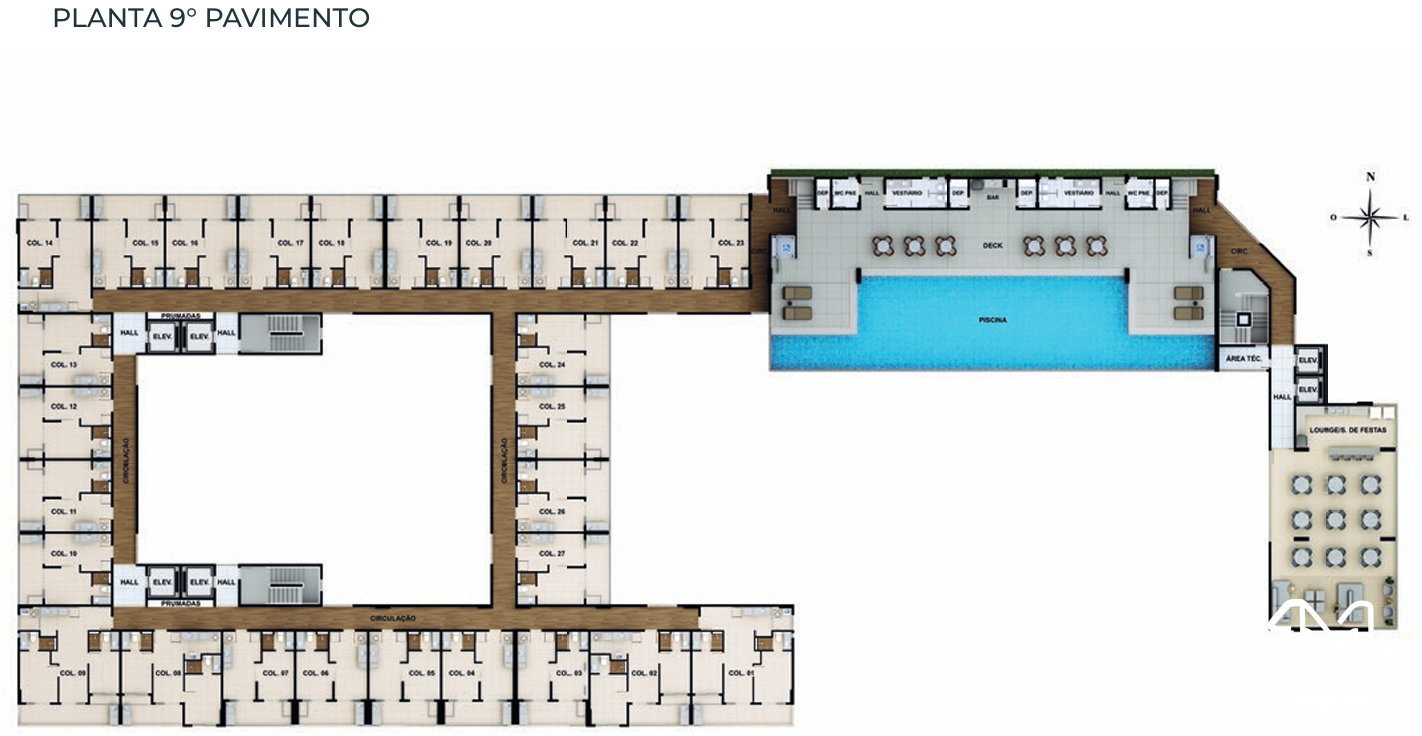 – 2 suítes com terraço e área gourmet 61,05m²;