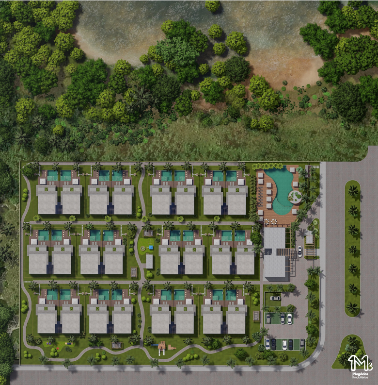 O SINGULARI Será um condomínio exclusivo, com 24 casas, totalmente fechado, dentro do condomínio Alphaville Guarajuba há 400m da melhor praia do litoral norte (Skar Reef/ Caribinho) onde contemplará: