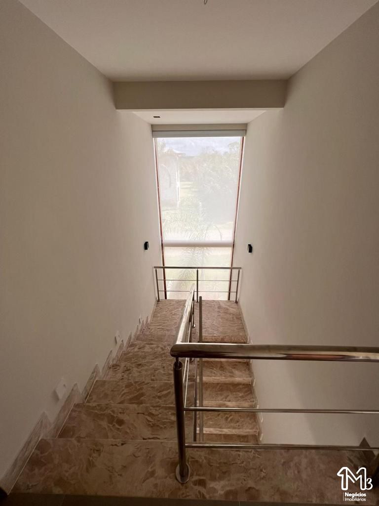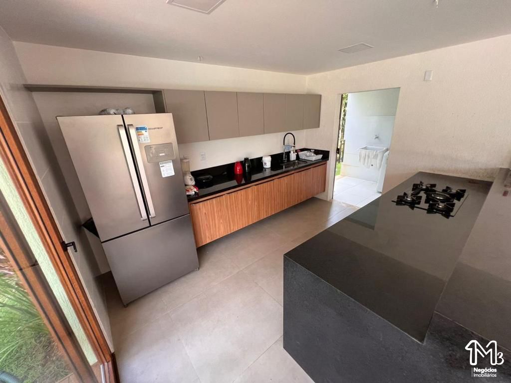Possui 800 m², 400 m² de área construída, composta com 02 pavimentos, 05 dormitórios (sendo 01 com closet), 05 suítes, lavabo, banheiro social, sala de estar ampla, sala de jantar com cozinha integrada, área de serviço, dependência de empregada completa, piscina com deck molhado, quiosque, espaço gourmet, área social, vaga de garagem para 04 a 06 veículos, com possibilidade de construção de uma quadra de esporte, pomar, área verde.
