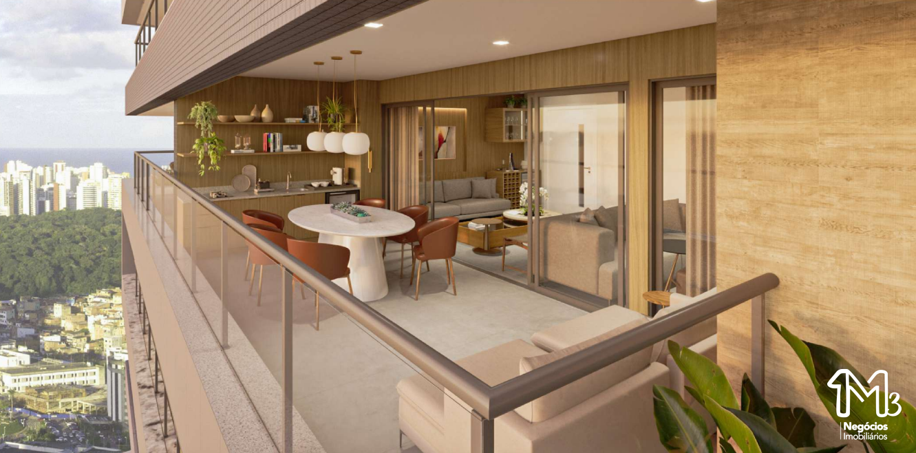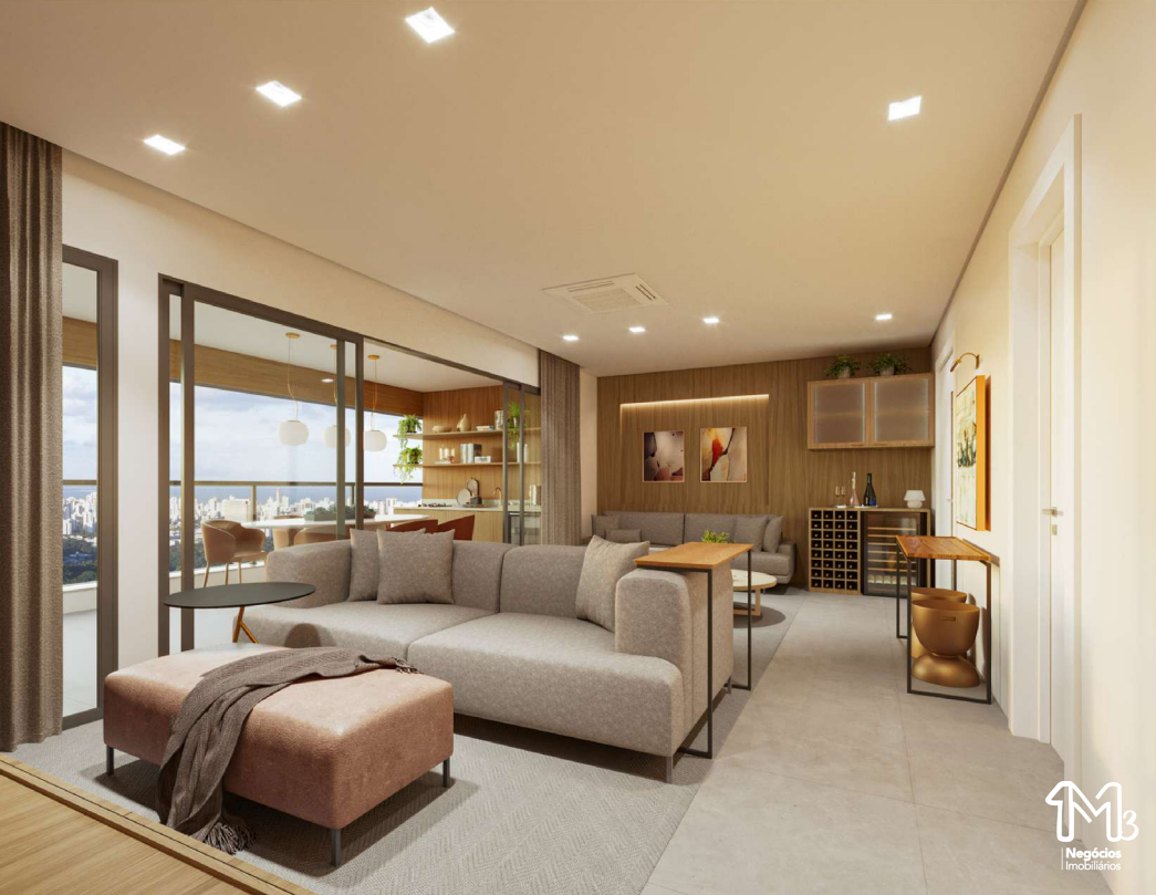 Apartamentos com plantas de 113,30m² a 142,81m², todas com varanda gourmet, área de serviço e acabamentos de alta qualidade. As plantas foram cuidadosamente desenhadas para oferecer praticidade e elegância em cada detalhe, com opções de layout que incluem home office e suíte master com closet.